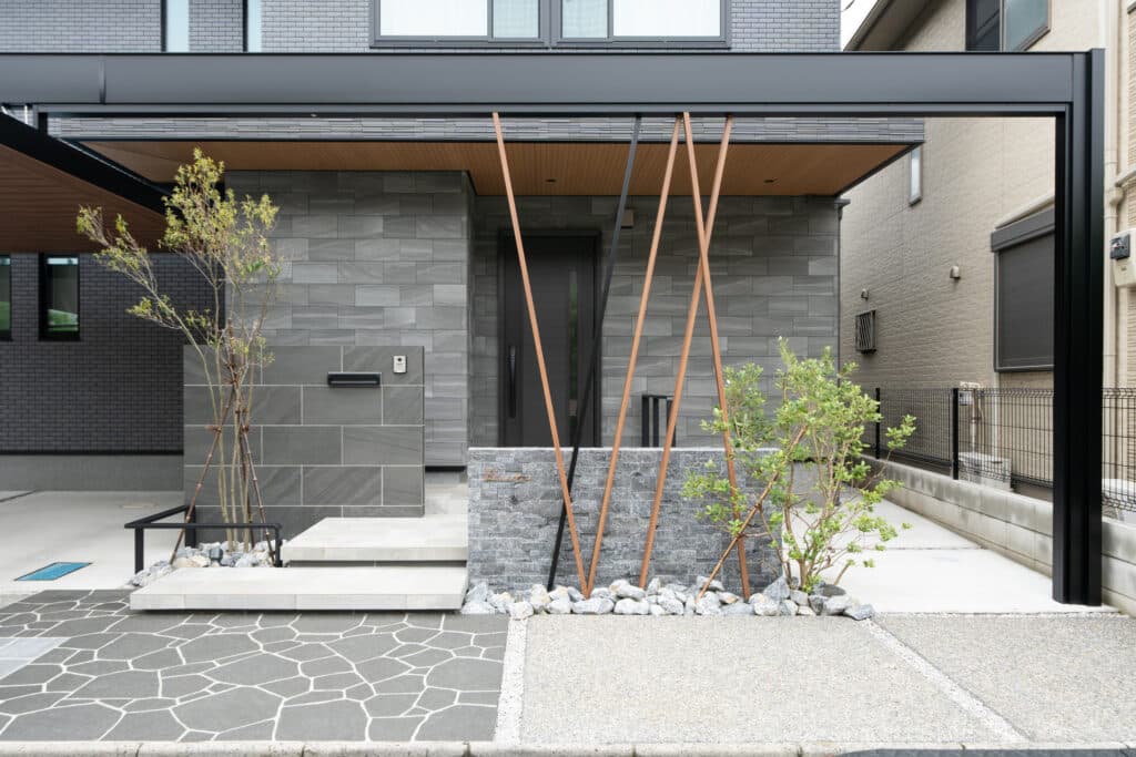 デザイン性を追求しながらも、玄関まわりの視線をやわらげる効果もあり、機能面でも優れた構成となりました。