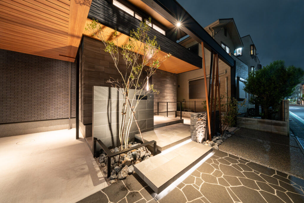 “ファサードをおしゃれに魅せたい”というお施主様の想いをもとに、素材の質感と光の演出を活かし、静かに心を満たす上質な空間をデザインしました☺️