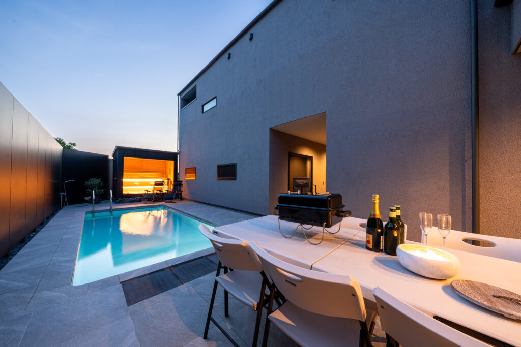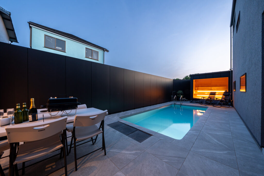 千葉県にて、プールとサウナを備えたラグジュアリーな外構が完成しました✨