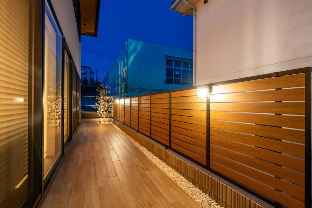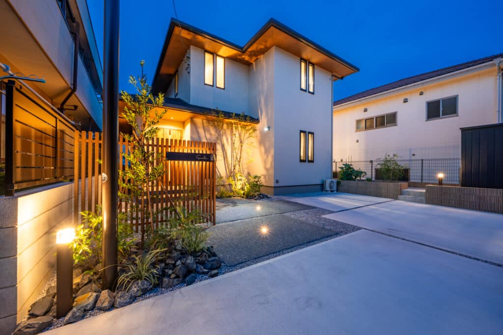 外構の照明計画で大切にしたのは、ただ明るくするのではなく、光と影で表情をつくること。
