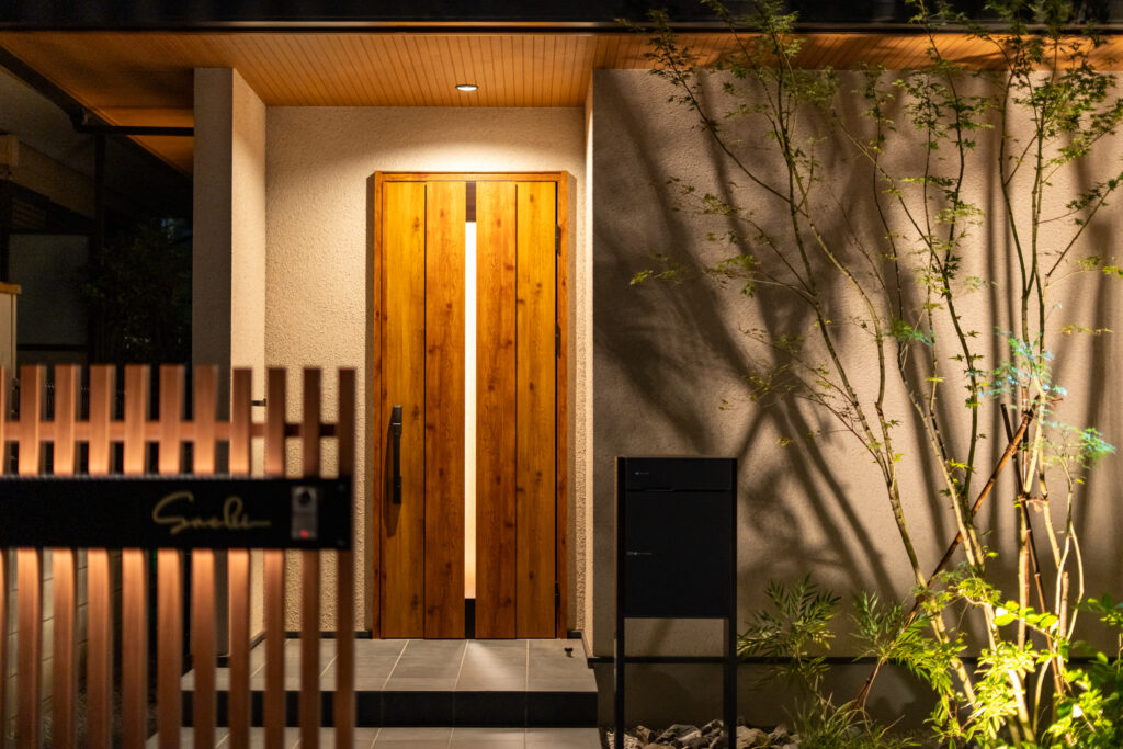 昼は素材の質感を楽しみ、夜は光と影による陰影を味わう——時間帯によって異なる表情を見せてくれるエントランスが完成しました☺️